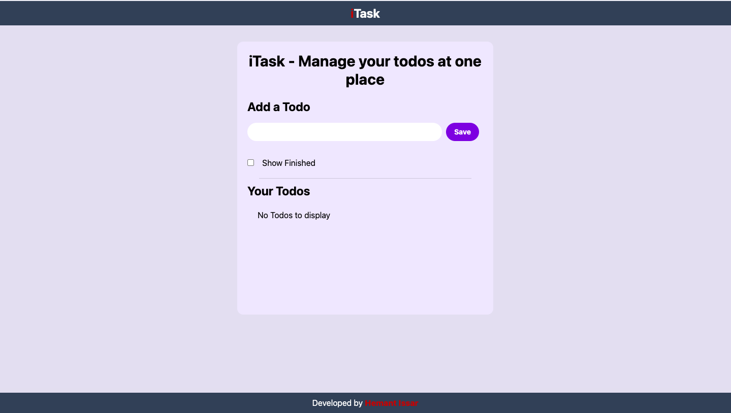 A responsive, user-friendly Todo app built with React and Tailwind CSS. Features include adding, editing, deleting, and saving tasks, plus toggling visibility of completed items. Clean UI and intuitive design ensure seamless task management.